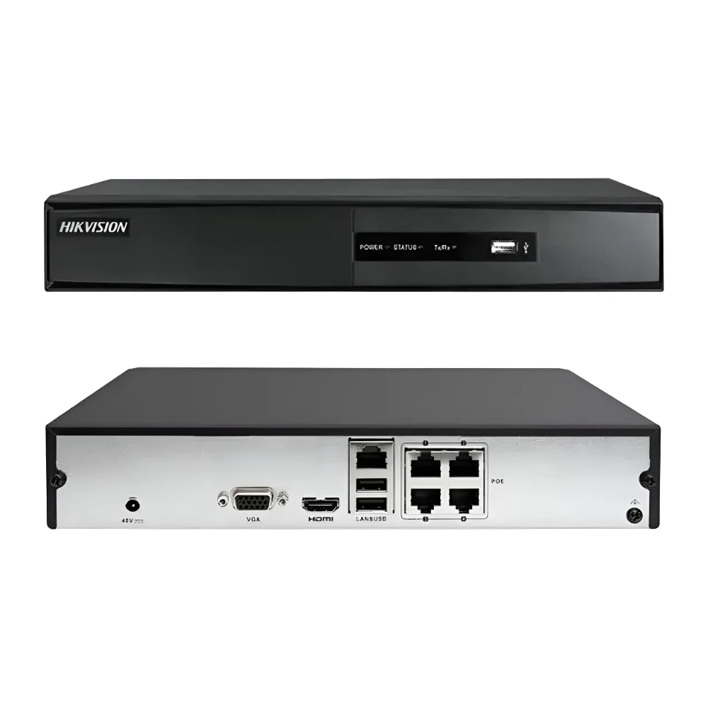 O NVR Hikvision DS-7104NI-Q1/4P/M é ideal para quem busca segurança robusta e fácil instalação. Com 4 portas PoE integradas, ele permite conectar e alimentar até 4 câmeras IP diretamente, eliminando a necessidade de fontes de energia externas ou switches adicionais ⚡.